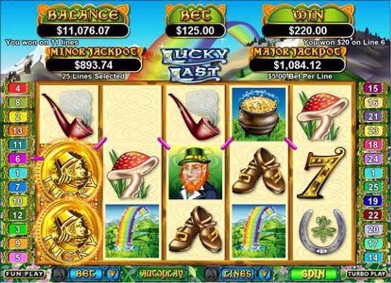 Lucky Last Slots features a standard 5-reel layout with 25 adjustable paylines, giving players flexibility in how they approach the game. The symbol set includes iconic Irish luck symbols like the shamrock scatter, horseshoes, rainbows, and sevens that pay out at various rates when lined up across active paylines. The leprechaun and pot of gold serve as the highest-paying regular symbols in the game. Lucky Last Slots requires matching symbols from left to right on active paylines to create winning combinations, with the exception of scatter symbols which pay regardless of position.